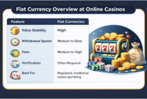 Fiat currencies are especially popular among players who prefer stability and regulatory protection. Because their value does not fluctuate, players always know the exact worth of their casino bankroll during online gambling sessions.